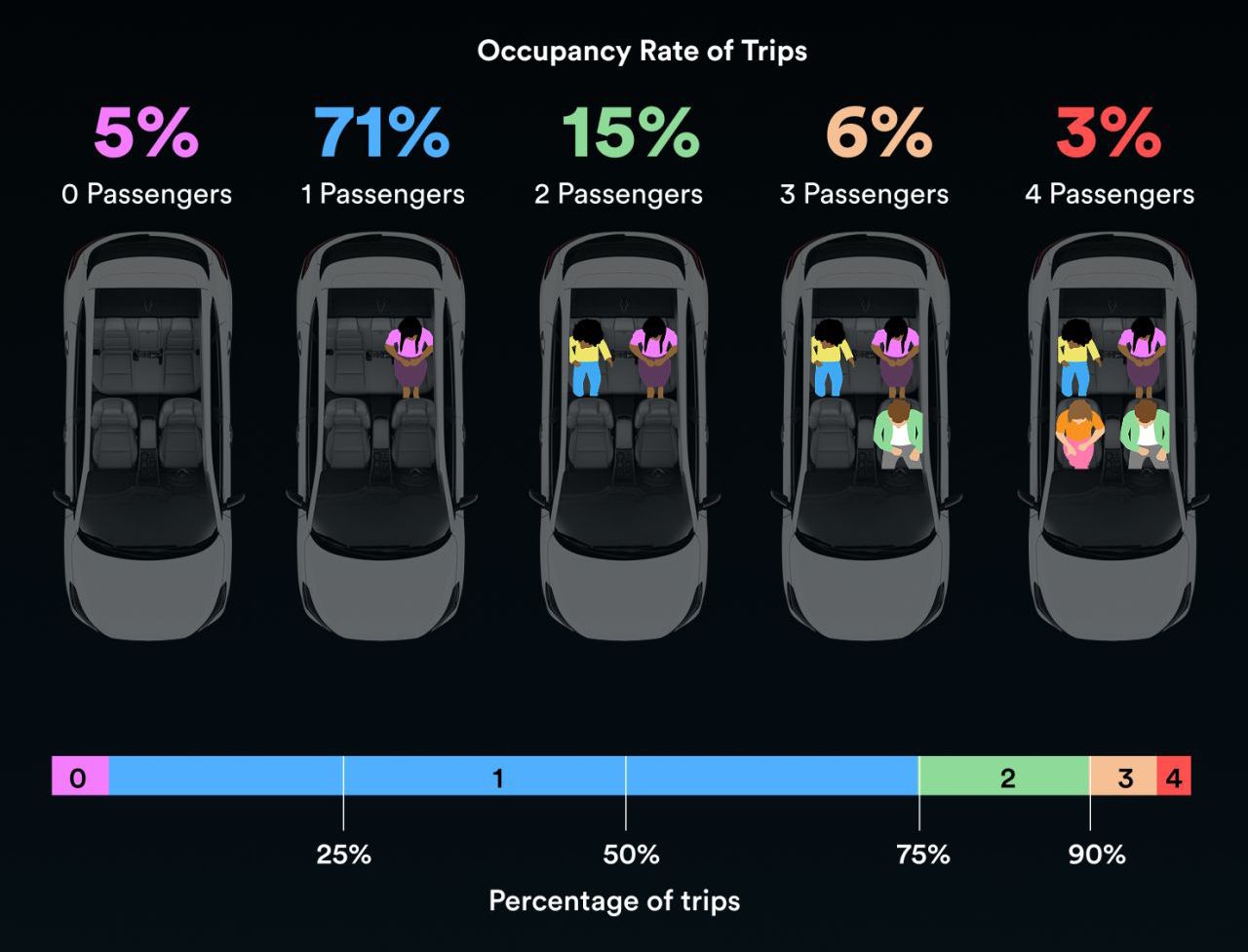 P.S. Why two-seat robotaxis make sense: 90% of trips have two or fewer passengers 🚕